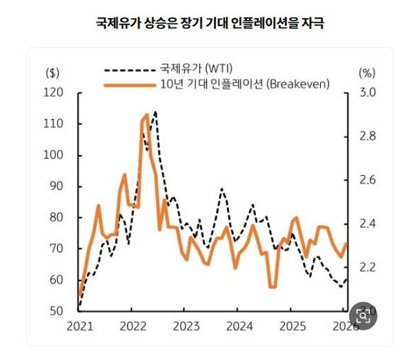 달러 약세에도 불구하고 글로벌 시장은 여전히 불안정하다. 미국과 이란 간의 핵 협상 긴장감이 고조되며 국제유가가 급등했고, 이는 미국의 인플레이션 기대를 자극하고 있다. 유가 상승은 위험 자산에 대한 회피 심리를 더욱 강하게 만들고 있다.