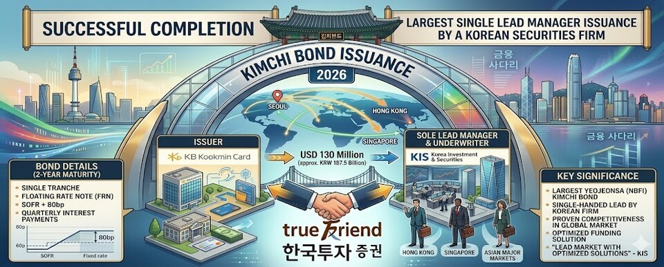 이번 발행은 한국투자증권이 단독으로 인수한 최대 규모의 여신전문금융회사 김치본드로, 국내 증권사의 외화 조달 능력을 다시금 확립한 사례다. 이는 금융 시장에서 한국투자증권의 위치를 한층 더 공고히 했다.