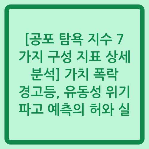 [공포 탐욕 지수 7가지 구성 지표 상세 분석] 가치 폭락 경고등, 유동성 위기 파고 예측의 허와 실